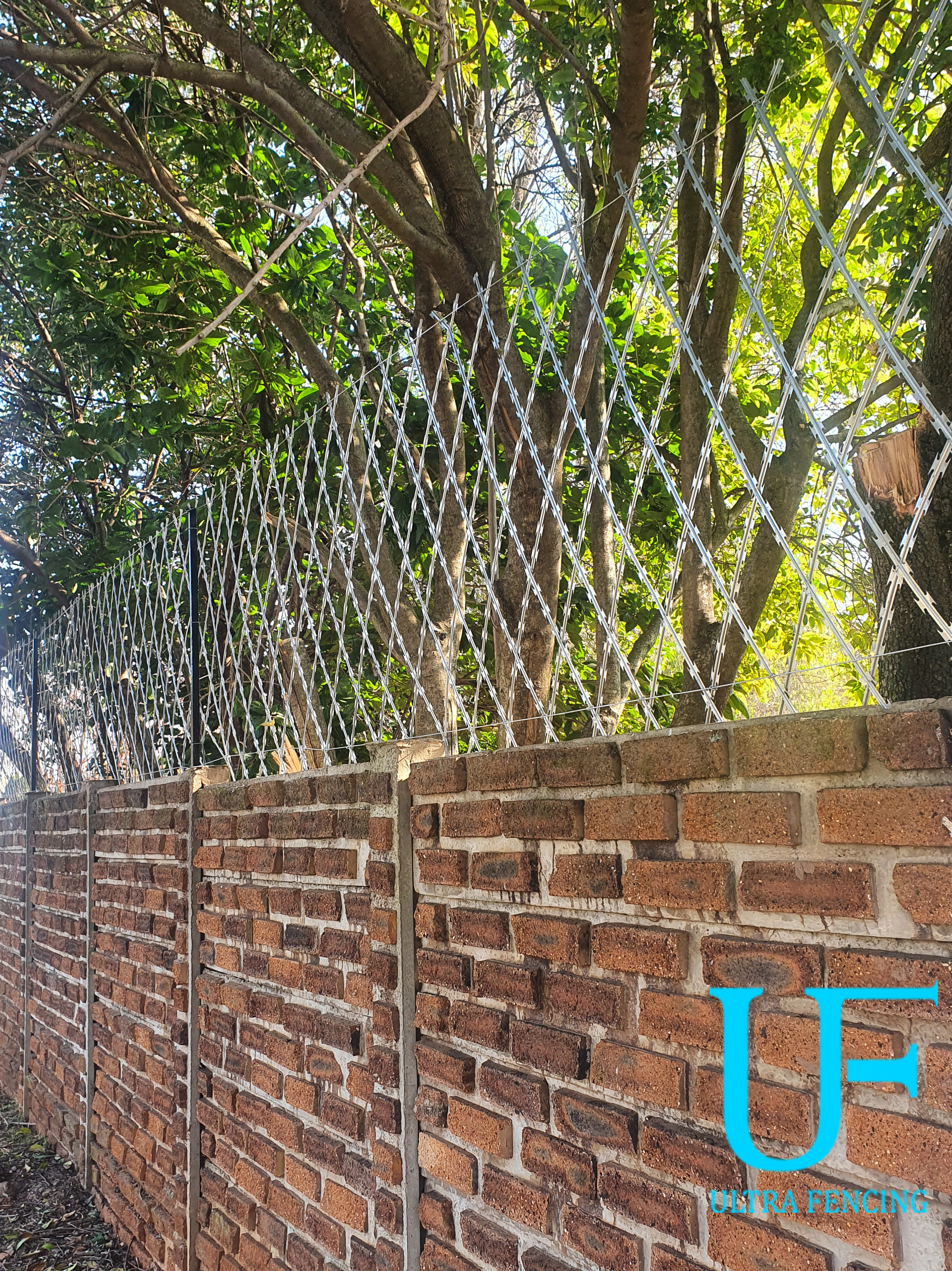 1.2m hgh diamond razor mesh on-top of a precast wall