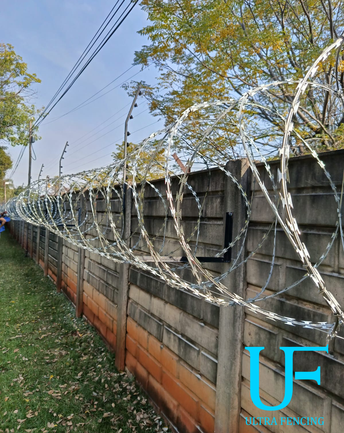 Flatwrap razor wire is the most commonly used typ, used in the subhurbs and private owned properties.