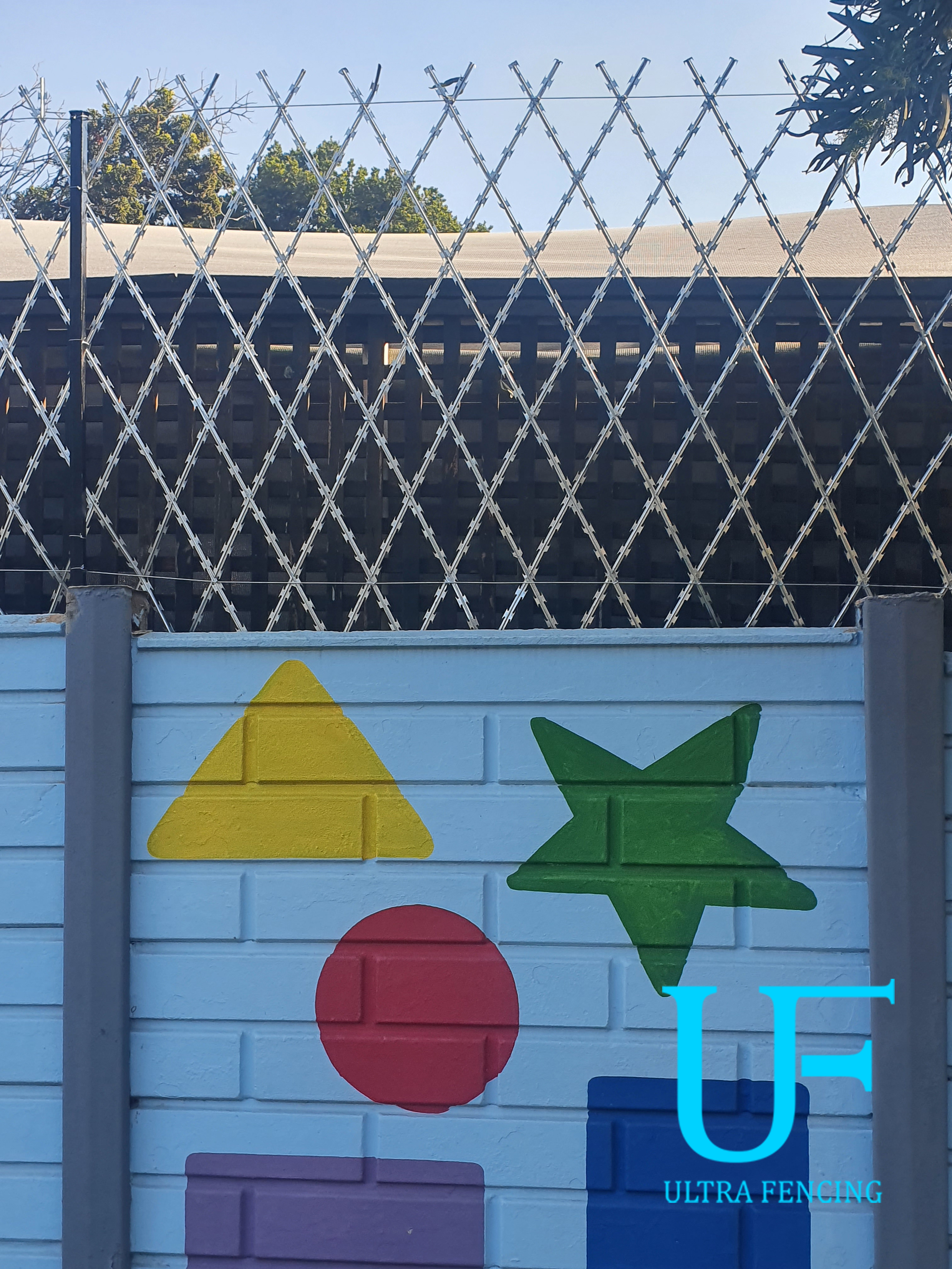 1.2m hgh diamond razor mesh on-top of a precast wall