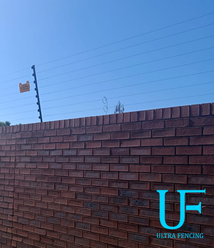 8 line fence on-top of a brick wall