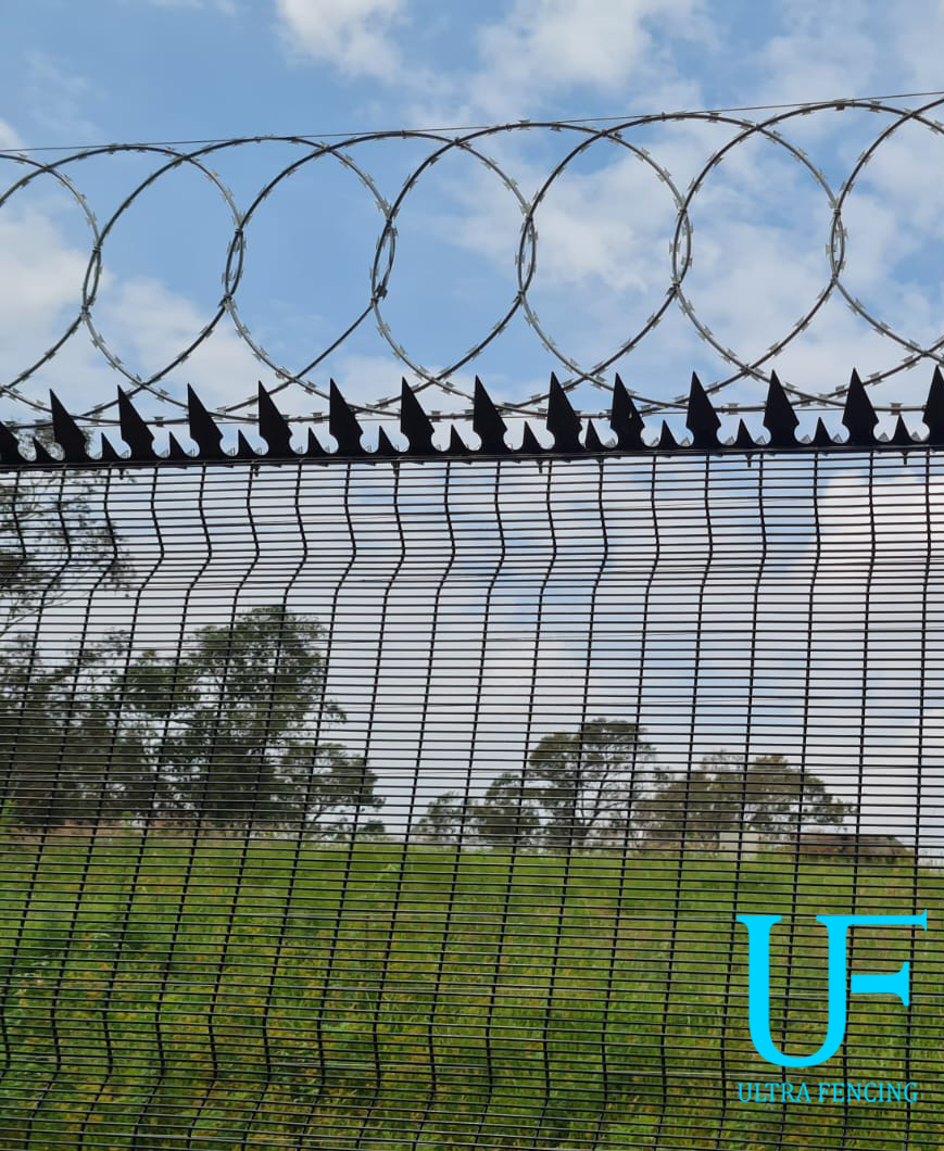 Diamond Razor mesh is commonly used as a self standing fence for high security purposes.